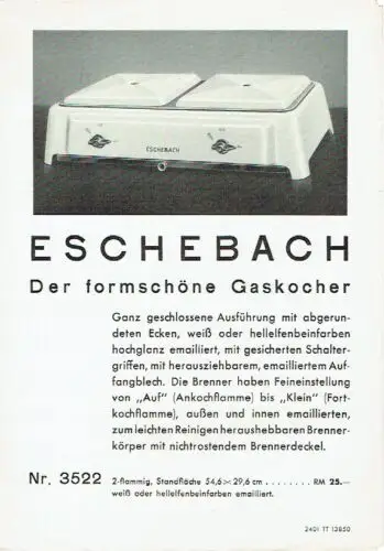 Titel: Eschebach - Der formschöne Gaskocher Nr 3522