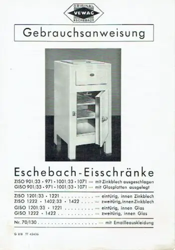 Eschebach Eisschränke, Gebrauchsanweisung.