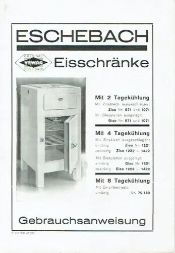 Titel: Eschebach Eisschränke, mit 2 Tagekühlung, 4 Tagekühlung, 8 Tagekühlung, Gebrauchsanweisung