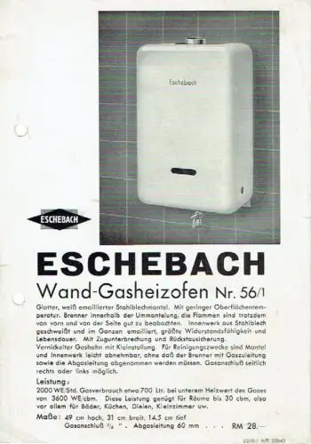Titel: Eschebach Wand-Gasheizofen