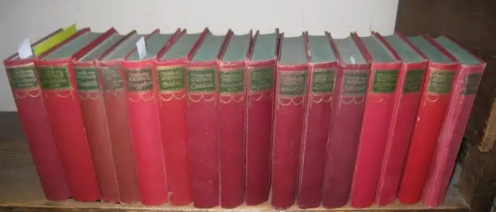 Freie Beschreibung: 19,6 : 13 cm. Rote, goldgeprägte Original-Leinenbände mit grünem Dreiseitenschnitt und farblich passenden Vorsatzpapieren. Die Bände teils leicht fleckig und berieben (Zustand, siehe Anmerkungen). Die Innenteile sauber; etliche Textillustrationen und auch Tafelabbildungen. Insgesamt, je nach Band, gut bis ausreichend erhalten