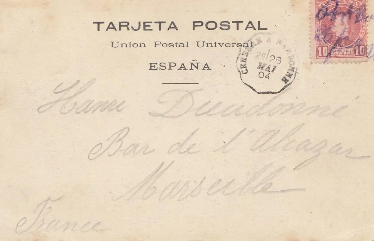 Espagne: 1904: Carte de vue de Port Bou vers Marseille