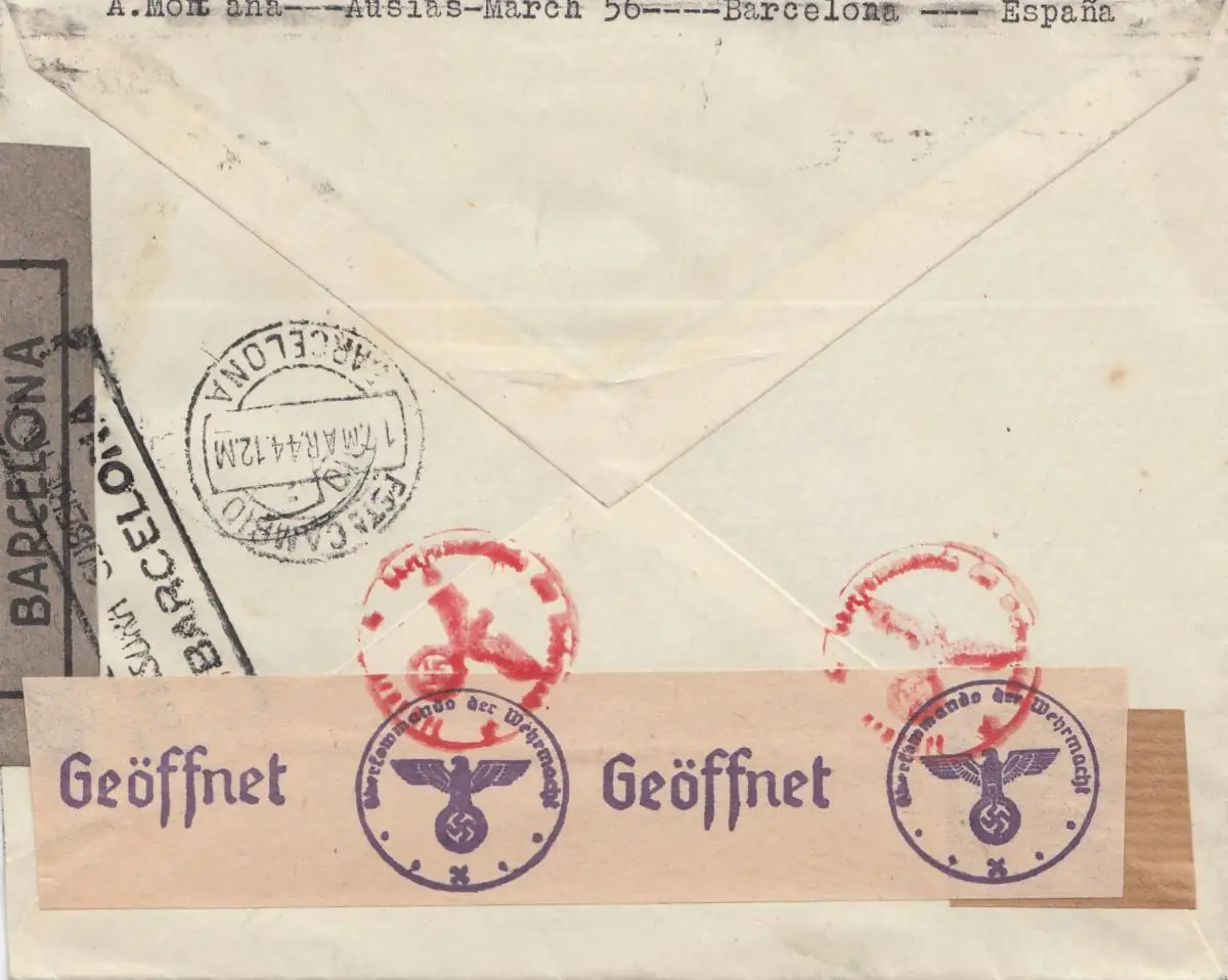 Espagne: 1944: Barcelone après Frauenfeld/Suisse, censures