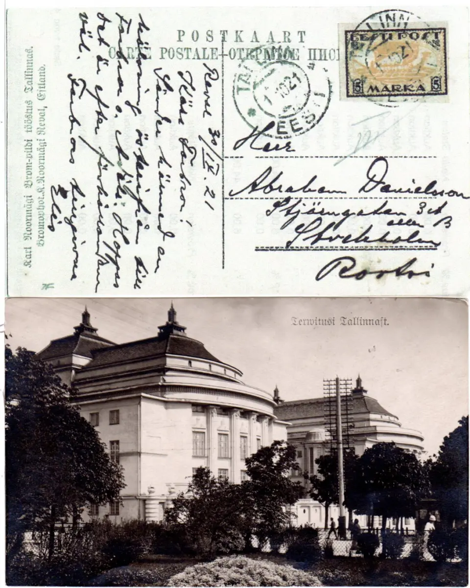 Estland 1921, 5 M. auf sw-AK v. Tallinn n. Schweden