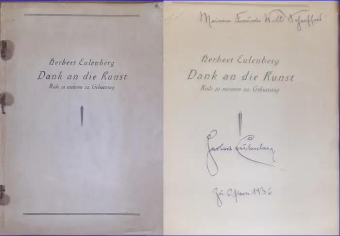 Eulenberg, Herbert: Dank an die Kunst. Rede zu meinem 60. Geburtstag.