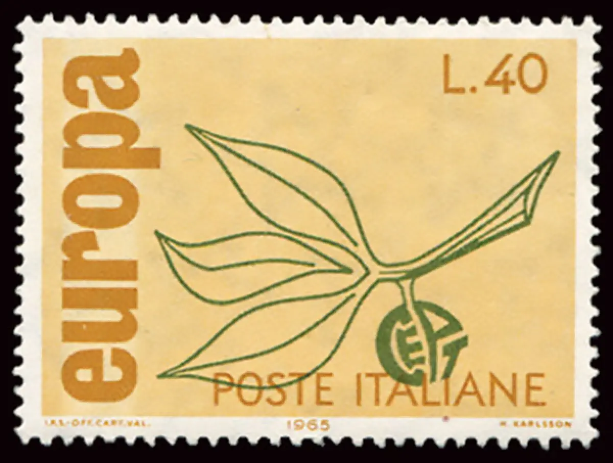 Europa '65 Lire 40 Sorten Druck der verschobenen Mitte Vollgummi - MHN - - - Europa '65 Lire 40 Nr. 1002a mit stark nach unten verschobenem Mitteldruck (grün) - Ungewöhnlich - Kat. euro 350 Cod. 671/14