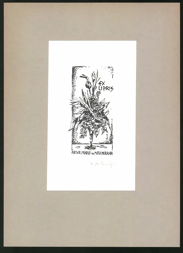 Exlibris Atur Mario da Mota-Miranda, Strauss steht in einer Vase