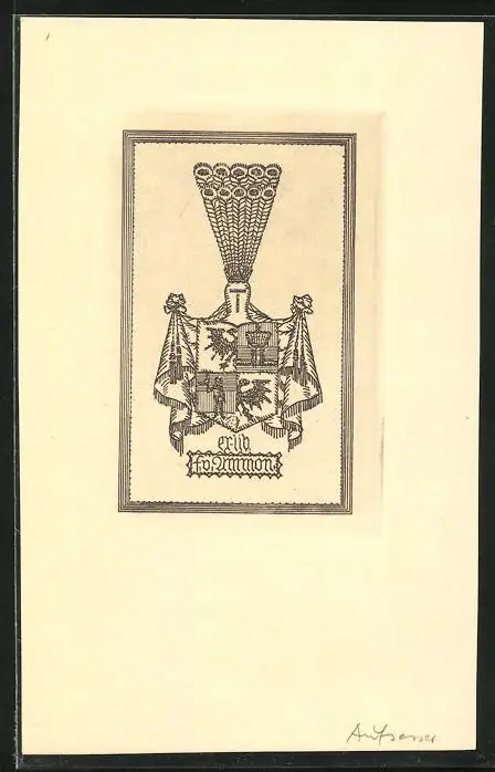 Exlibris F. v. Ammon, Wappen mit Ritterhelm