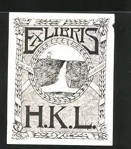 Exlibris H. K. L., Wiese mit Windmühle