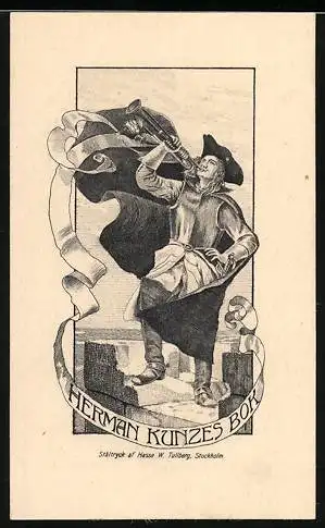 Exlibris Herman Kunze, Ausrufer mit Trompete