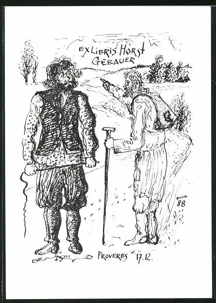 Exlibris Horst Gebauer, Vagabund weist einem Mann den Weg