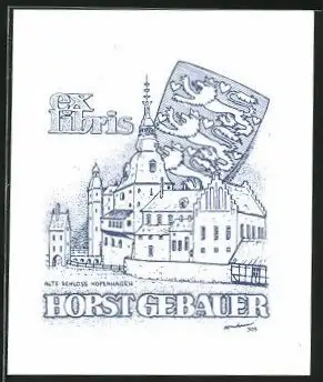 Exlibris Horst Gebauer, Wappen mit Löwe, Altes Schloss zu Kopenhagen