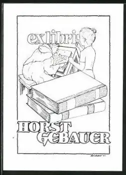 Exlibris Horst Gebauer, älterer Mönch am Lesen mit einer jungen Schülerin
