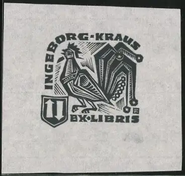 Exlibris Ingeborg Kraus, Hahn am Morgen