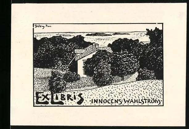 Exlibris Innocens Wahlström, Haus hinter Baumgruppe