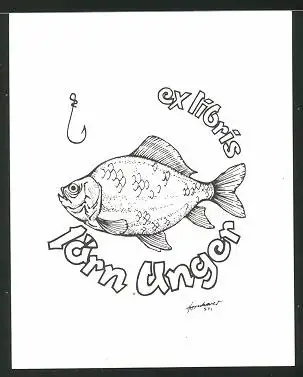 Exlibris Jörn Unger, Fisch mit Haken