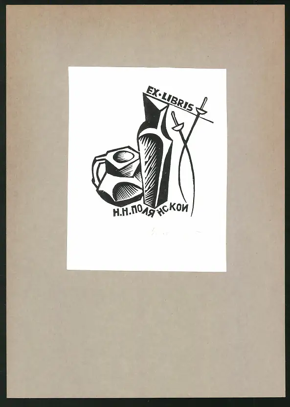 Maße Exlibris: 10,5cm x 8cm, auf Karton montiert, guter Zustand