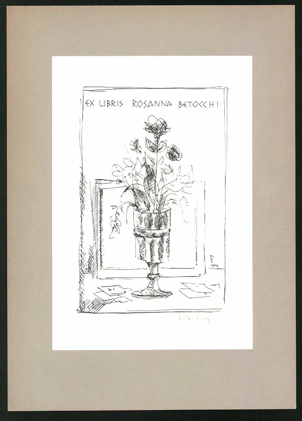 Exlibris Rosanna Betocchi, Blume steht in einer Vase