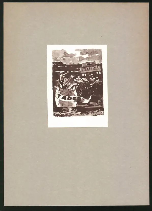 Maße Exlibris: 8cm x 6cm, auf Karton montiert, guter Zustand