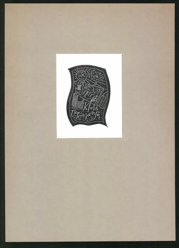 Maße Exlibris: 7cm x 5,5cm, auf Karton montiert, guter Zustand