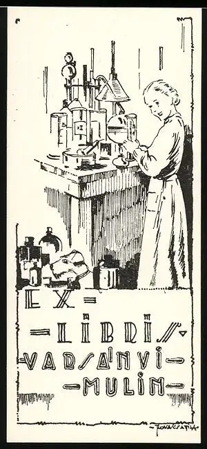 Exlibris Vadsanvi Mulin, Parfümeurinbei der Herstellung von Parfüm im Labor