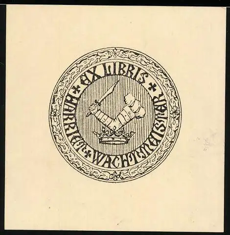Exlibris Wachtmeister Harriet, Krone & Arm mit Schwert