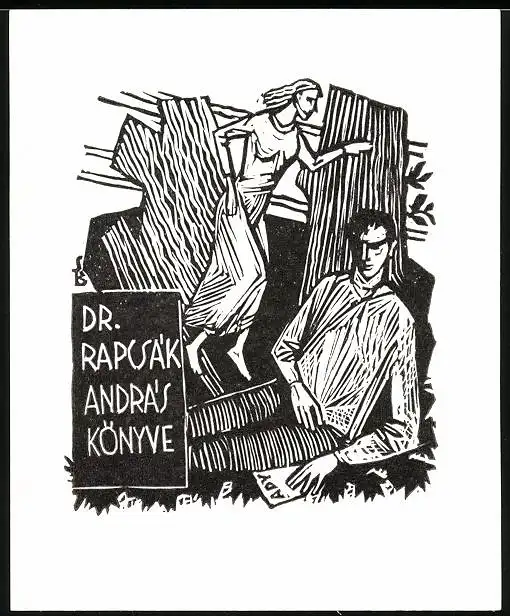 Exlibris von Bela Stettner für Dr. Rapcsak Andras, Herr unter Baum sitzend nebst Dame