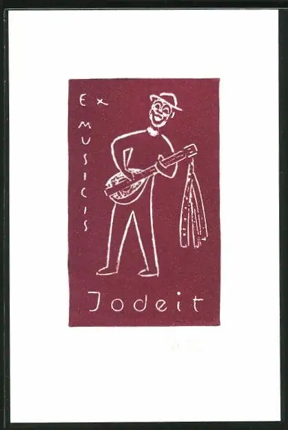 Exlibris von Franz Grickschat für Jodeit, Musiker spielt auf seiner Laute