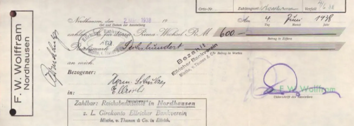 F. W. Wolfram Nordhausen a. Harz Wechsel 1938