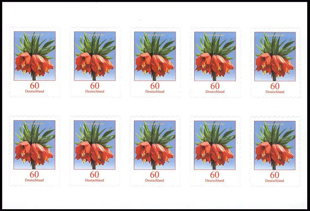 FB 35 fleur couronne impériale 60 cents, feuille de 10 x 3046, **