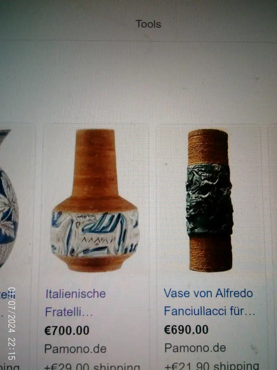 Die 1950er und 1960er Jahre waren für Fratelli Fanciullacci eine goldene Ära, geprägt von innovativen Designs und lebendigen Glasuren. In dieser Zeit wirkten namhafte Designer mit, darunter Aldo Londi, der vor seiner Anstellung bei Bitossi bei Fanciullacci arbeitete. Die Vasen dieses Trios verkörpern den „Alla Moda“-Stil (in Mode), der sich durch kräftige Reliefmuster und satte, farbenfrohe Oberflächen auszeichnet.