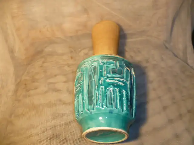 Wunderschön detaillierte Vase in leuchtendem Türkis (grün/blau) mit strukturierter Sgraffito-Schulter und -Hals von Fratelli Fanciullacci, Italien, ca. 1960er Jahre. Wunderschönes, skurriles, geprägtes Tiermuster, möglicherweise ein Hund. Schöne Schattierung und Textur zu diesem Stück und einer, den wir nicht gesehen haben, bevor so, möglicherweise, ziemlich selten. Seine Arbeit wird oft fälschlicherweise Aldo Londi für Bitossi zugeschrieben, aber es ist leicht zu verstehen, warum, denn Fanciullaccis Arbeit ist genauso spannend und gut ausgeführt. Aus der Vitrine top!