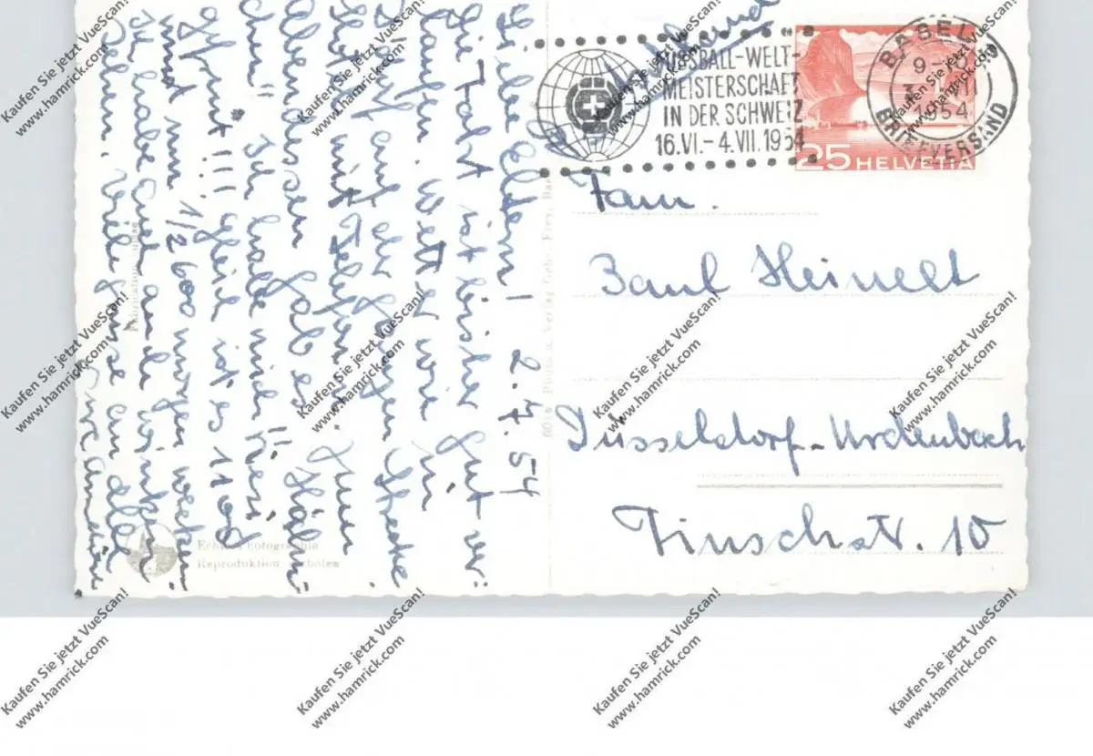 FUSSBALL - WM 1954 Schweiz, Werbestempel Basel