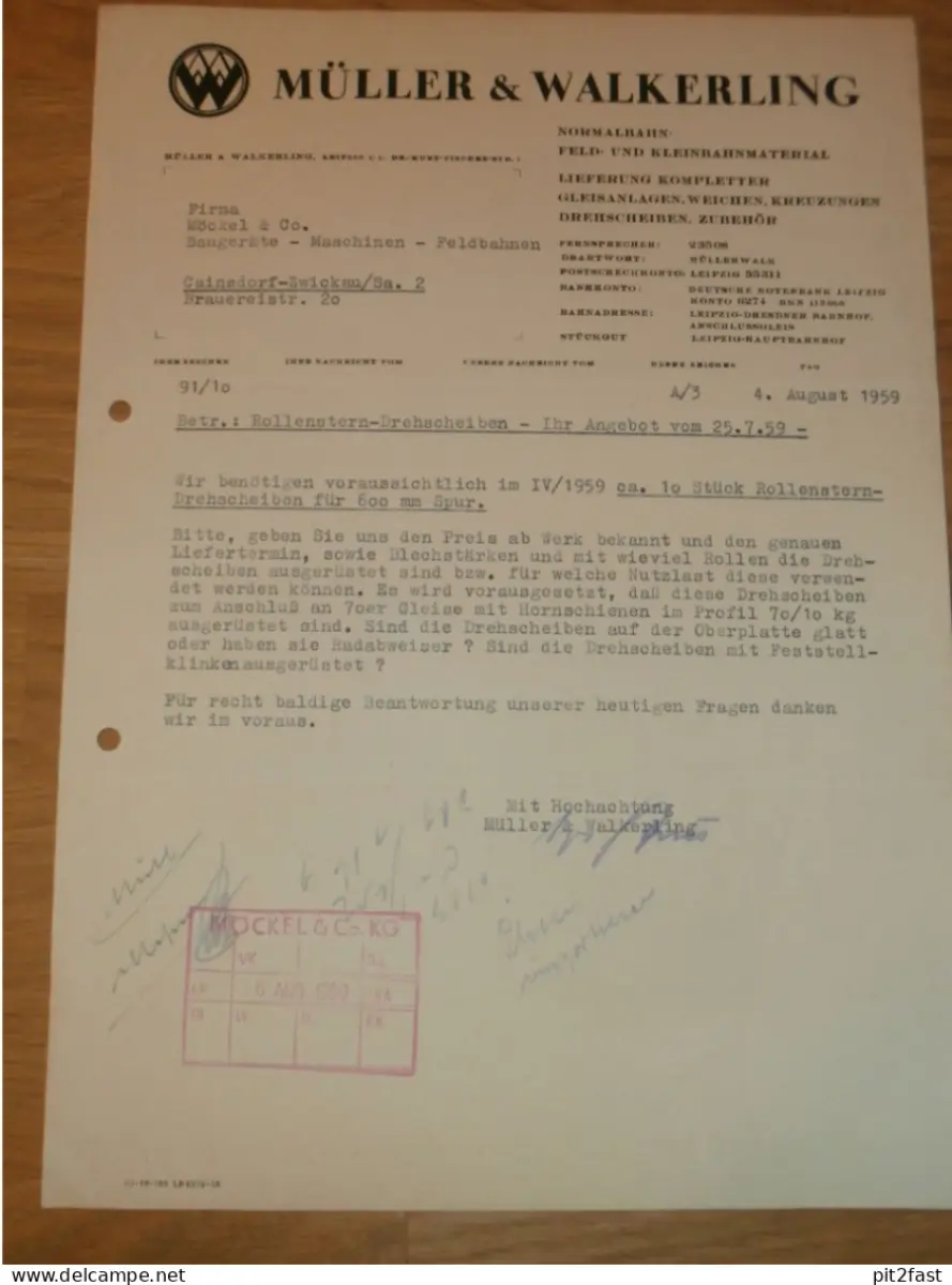 Feldbahn - Müller & Walkering in Leipzig , 1959 , Schmalspur , altes Dokument , Reklame / WerbungAZ-WR/2m