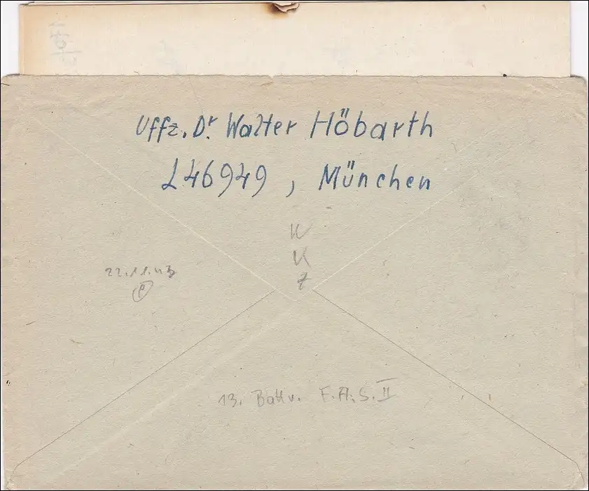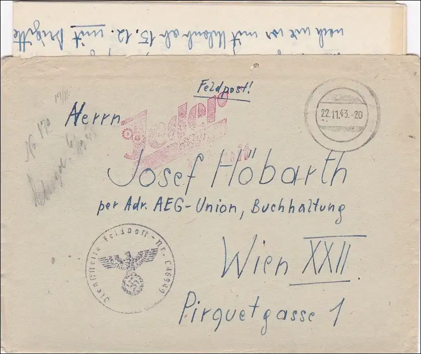 Poste de terrain: 1943 de Munich à Vienne; numéro de FP 46949, avec contenu