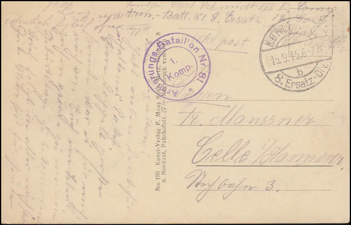 Post de terrain BS Batalion-Bataillon n° 81 - 15.9.1915 sur AK Cimetière militaire