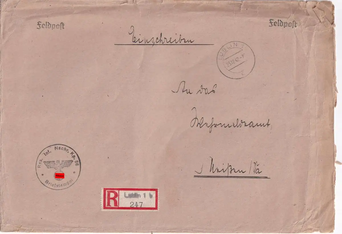 Poste de champ Enregistrer Lublin vers Meissen 1942