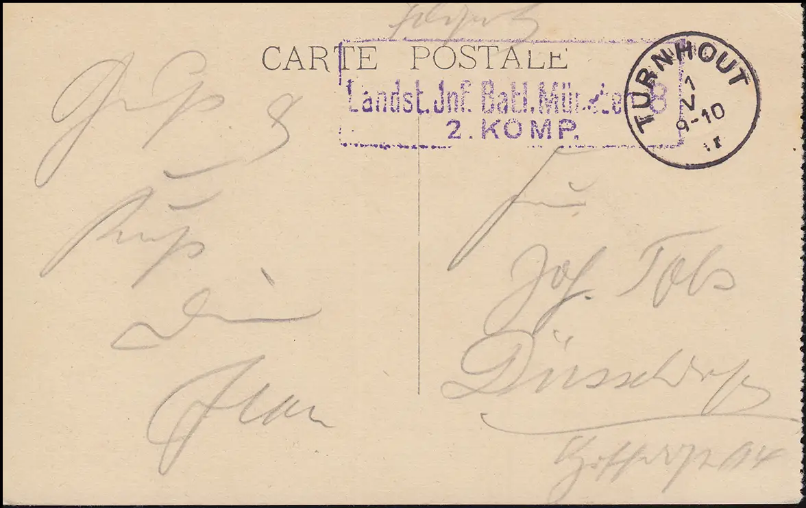 Feldpost Landsturm-Inf.-Batl. Munich AK Ypres Cheminée de la salle à manger TURNHOUT