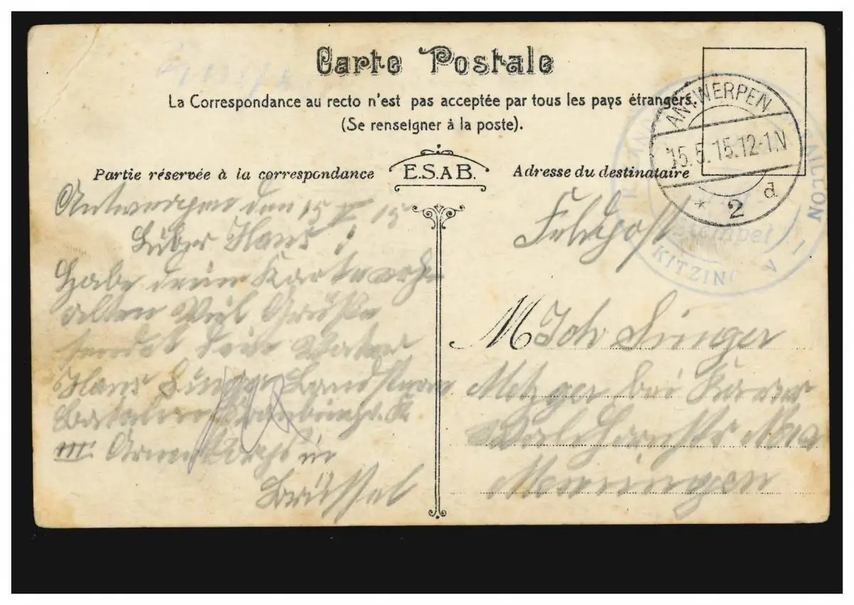 Feldpost Landwehr-Inf.-Bataillion Kitzingen sur AK Anvers avec vapeur 15.5.15