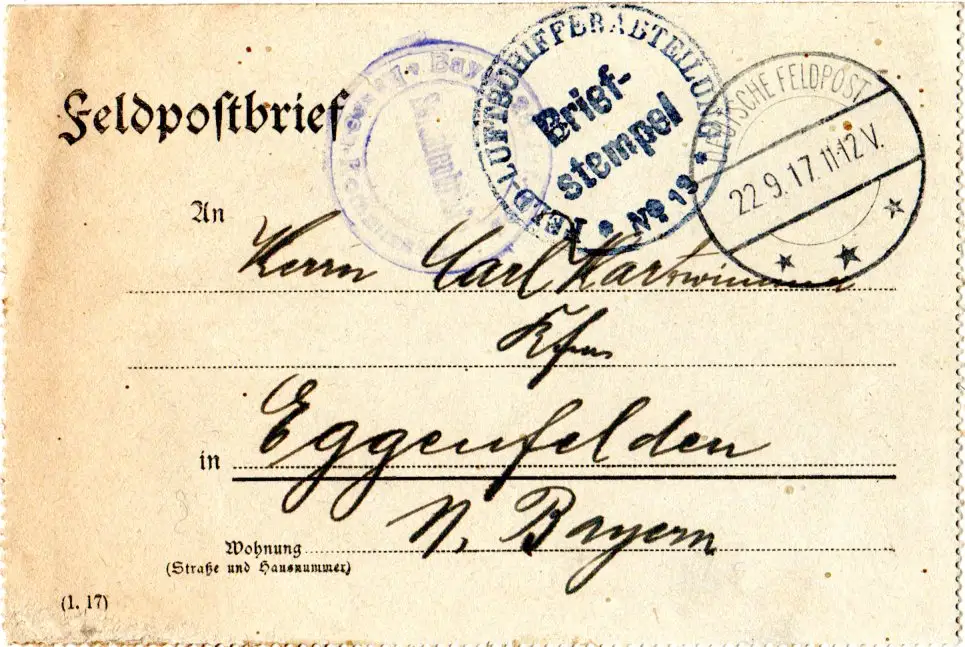 Feldpost WK I, Briefstpl. FELD-LUFTSCHIFFERABTEILUNG No.19 auf FP-Kartenbrief