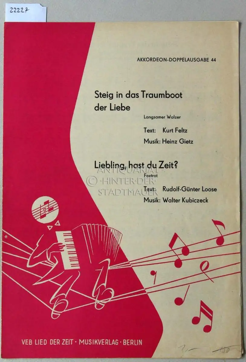 Feltz, Kurt und Rudolf-Günter Loose: Steig in das Traumboot der Liebe. (Feltz/Gietz) - Liebling, hast du Zeit? (Loose/Kubiczeck) [= Akkordeon-Doppelausgabe 44].