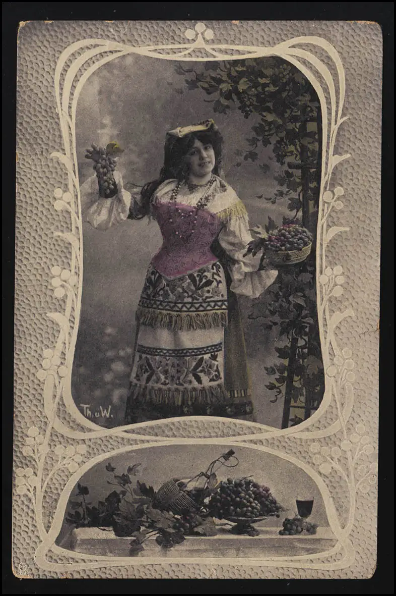 Femmes AK Jeune femme Tracht Raisins / vignes Post EISENACH / FFM 22.4.07