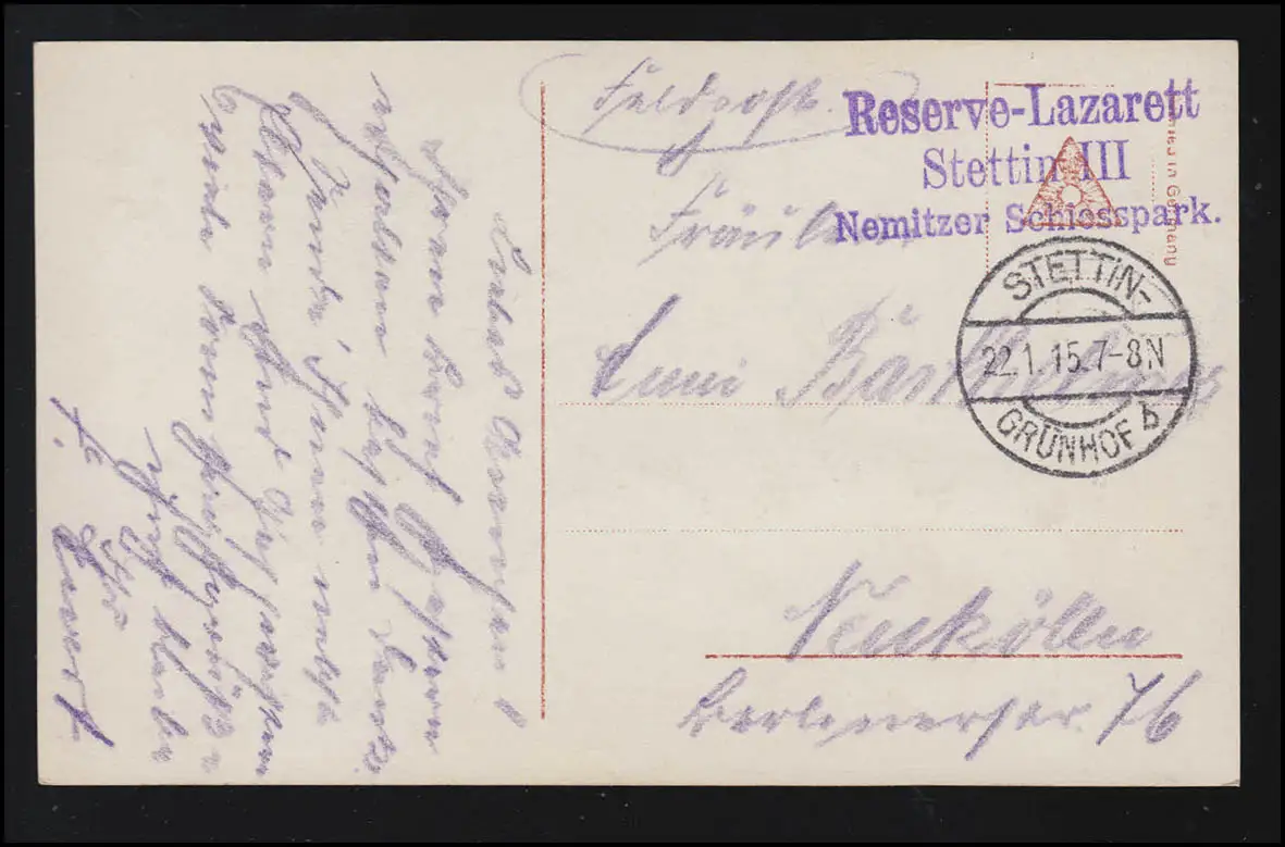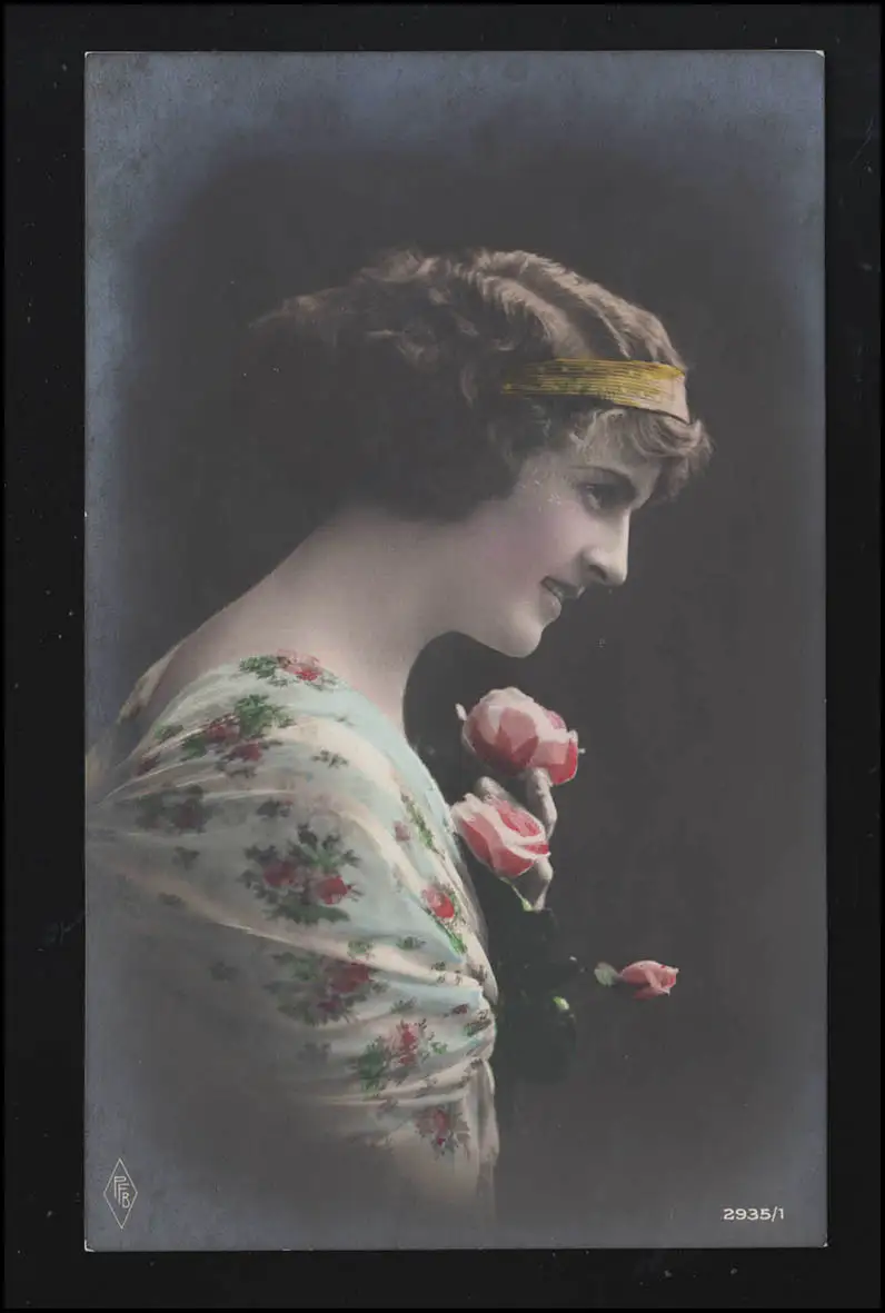 Femmes AK bande boucles sombres profil portrait de l'hôpital de réserve STETTIN 22.1.1915