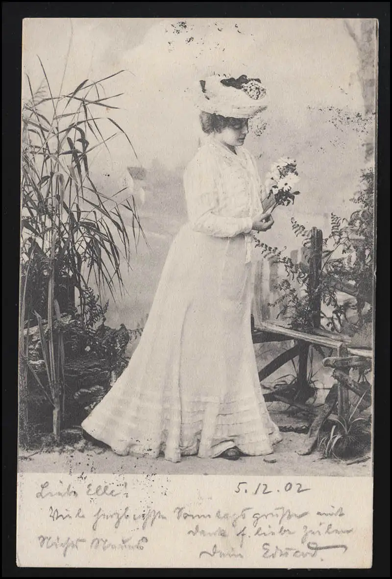 Femmes Photo AK Dame en longue robe sur le bord du champ avec fleurs ZÉREUX 6.12.1902
