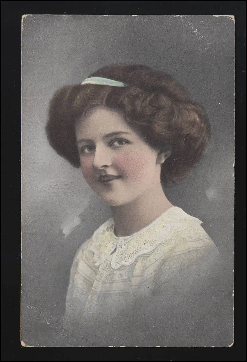Femmes Portrait AK Souris avec la pointe de la fleur & Cheveux OPALENITZA (Poses) 12.4.15