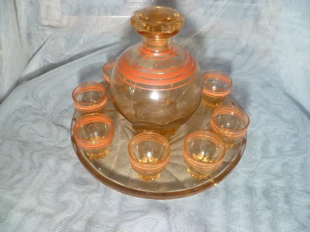Ferdinand von Poschinger Art Deko Rosalin Farben Glas Set , bestehend aus