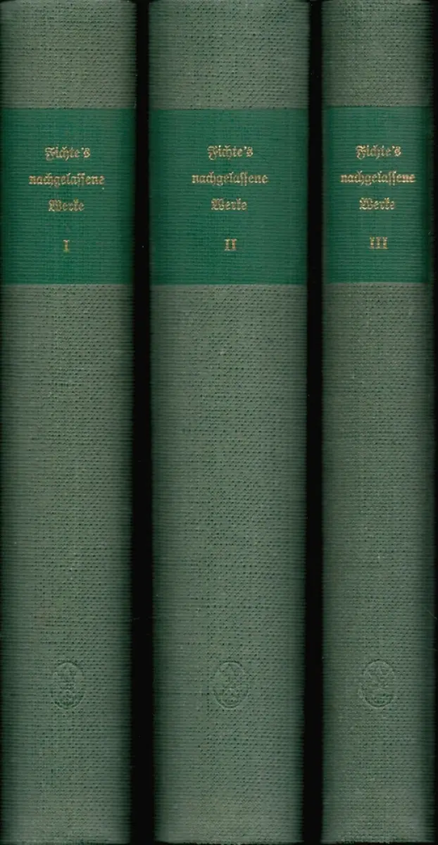 Titel: Johann Gottlieb Fichte's nachgelassene Werke. Hrsg. von I. H. [Immanuel Hermann] Fichte. (Unveränderte REPRINT der Ausgabe Berlin, 1834). 3 Bde. (= komplett)