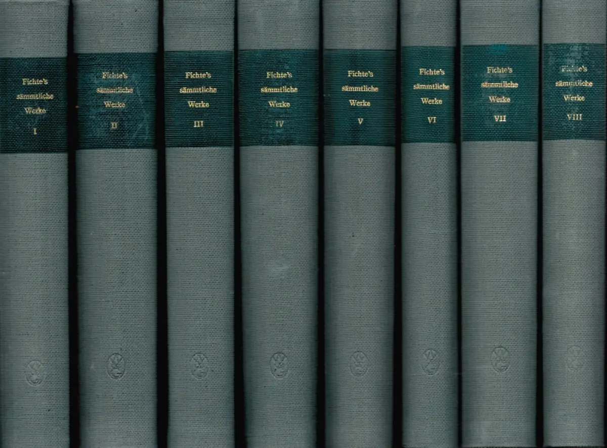 Titel: Johann Gottlieb Fichte's sämmtliche Werke. Hrsg. von I. H. [Immanuel Hermann] Fichte. (Unveränderte REPRINT der Ausgabe Berlin, 1845-1846). 8 Bände. (= komplett)