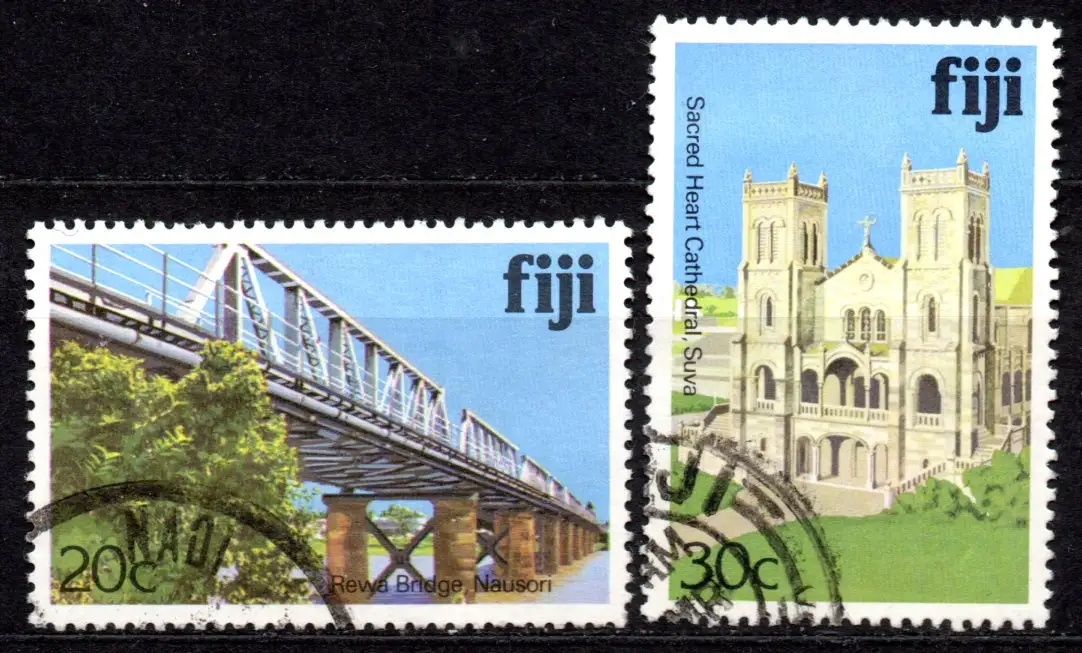 Fidschi - Inseln, Mi-Nr. 408 I + 409 I gest., Brücke + Kirche