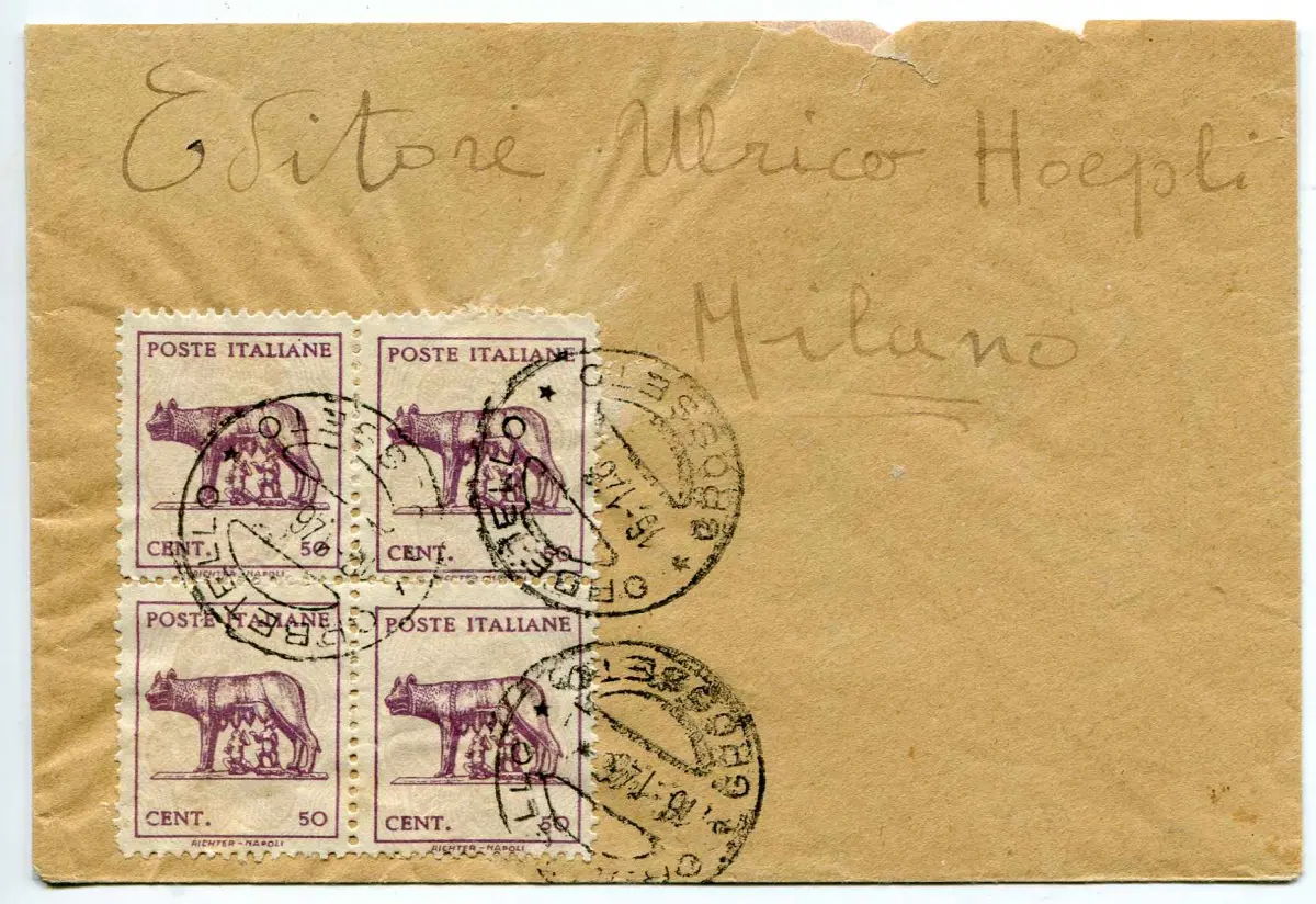 Filigrane Viertellupe auf Umschlag BÜSTE - Filigrane Lupe Nr. 515A Viertel auf Umschlag von Orbetello nach Mailand am 16.1.46 - Seltener Gebrauch im Norden - im Tarif Nr. 318/6